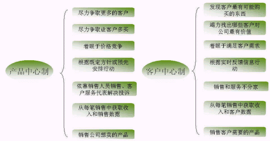 蓋洛普認為新型的企業(yè)與客戶的關系應當是以"客戶為中心"與客戶的互動關系,通過滿足客戶需求提高客戶滿意度來吸引和留住客戶,從而建立和保持企業(yè)的競爭優(yōu)勢。這其實就是從產品中心制到客戶中心制的演變的體現(xiàn),如下圖: