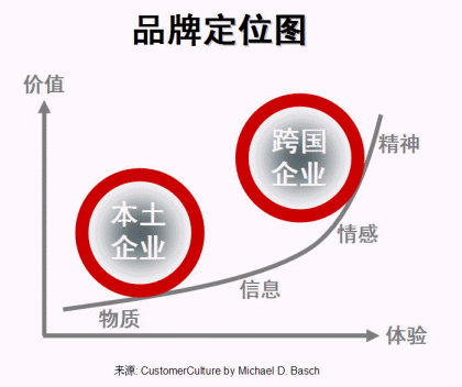 客戶體驗(yàn)是客戶關(guān)系管理的重要組成部分。根據(jù)過去數(shù)年評(píng)選中國(guó)最佳CRM實(shí)施企業(yè)所作的分析,本土與外資企業(yè)在企業(yè)體檢中各項(xiàng)主要評(píng)分中有較大差距,其中之一是客戶體驗(yàn)(-7.1分,見圖一、本土與跨國(guó)企業(yè)之差距)。本土企業(yè)若只提供低層次的客戶體驗(yàn),只為客戶帶來低價(jià)值,也只能打價(jià)格戰(zhàn)、做代工,很難做大做強(qiáng)打通全球市場(chǎng)。做好品牌,其實(shí)再深入一點(diǎn)說就是要做好客戶體驗(yàn),價(jià)值(價(jià)格)才會(huì)上去(見圖二、品牌定位)。