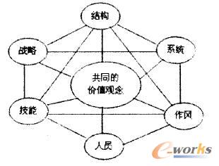 按照麥肯錫以及科特勒的綜合觀點,前面三個要素——戰(zhàn)略、結(jié)構(gòu)和系統(tǒng)被認為是最成功的硬S;后面四個要素——作風(fēng)、人員、技能和共同的價值觀念是軟S。每個組織都和總體環(huán)境的某個部分相互影響,相互作用,并且把這一部分成為相關(guān)環(huán)境并指出最能適應(yīng)環(huán)境的公司必將獲得成功。