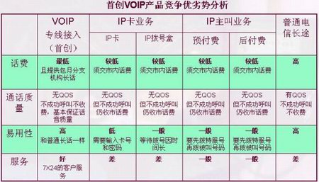比業(yè)內(nèi)其他多種IP電話更具價格優(yōu)勢。每個長途呼叫無論是否建立成功,都不收取本地市話費用。對于國內(nèi)目前話務(wù)量集中的國際間通信,采用的資費標(biāo)準(zhǔn)相對其他運營商具有價格優(yōu)勢。對于企業(yè)的Intranet Call,由于企業(yè)間不產(chǎn)生話費,更能夠節(jié)省大量的話務(wù)開支。