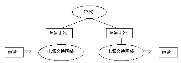 第三階段的重點(diǎn)是電路交換網(wǎng)通過IP網(wǎng)至電路交換網(wǎng),即實現(xiàn)以Internet作為傳送手段進(jìn)行通信的目的,其示意圖如圖所示。