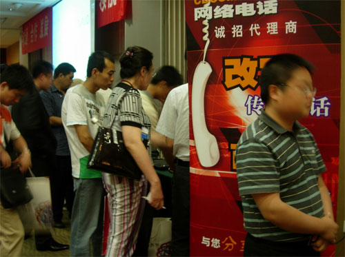 會上中寬網(wǎng)信余輝先生、王凱剛先生和李榮娟女士分別以“NGN軟交換業(yè)務(wù)發(fā)展趨勢和創(chuàng)業(yè)機(jī)會”、“中寬網(wǎng)信企業(yè)級解決方案”、“代理商與終端用戶系統(tǒng)平臺操作與使用”為題發(fā)表了演講,從各方面展示了中寬網(wǎng)信的優(yōu)勢和高速發(fā)展趨勢,同時上海迅時邱洪先生發(fā)表了“迅時通訊——引領(lǐng)技術(shù)未來”、國人陸寧先生發(fā)表了“國人通訊引領(lǐng)無線IP通訊未來”、派瑞符杰先生發(fā)表了“無線VOIP應(yīng)用級解決方案” 得到與會者的積極響應(yīng)。會議現(xiàn)場還展示了全球首款雙模手機(jī)(GSM/WiFi)、可視電話、迅時網(wǎng)關(guān)、國人無線IAD等高端產(chǎn)品,眾多與會者現(xiàn)場體驗了相關(guān)產(chǎn)品的高質(zhì)量通話服務(wù),反響熱烈。