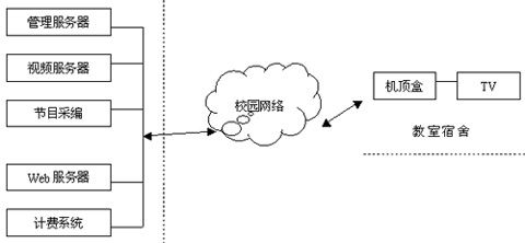 通過(guò)校園網(wǎng)絡(luò),連接多媒體教室、圖書館、電教中心、學(xué)校辦公樓、宿舍區(qū),可在多個(gè)多媒體教室之間進(jìn)行動(dòng)態(tài)視頻、語(yǔ)音和數(shù)據(jù)的教學(xué)、廣播現(xiàn)場(chǎng)實(shí)況、進(jìn)行學(xué)術(shù)研討。也可向校園網(wǎng)上廣播多媒體教室的實(shí)況動(dòng)態(tài)圖象和話音。使用STB通過(guò)計(jì)算機(jī)網(wǎng)絡(luò)上進(jìn)行實(shí)時(shí)教學(xué)時(shí),可將教師的現(xiàn)場(chǎng)講課的實(shí)況動(dòng)態(tài)視頻圖象,聲音及文字進(jìn)行采集壓縮后通過(guò)網(wǎng)絡(luò)傳送給每個(gè)網(wǎng)絡(luò)上使用STB正在收看講課的學(xué)生。校園網(wǎng)絡(luò)上的用戶還可在網(wǎng)上收看學(xué)校電教室、演播中心、外語(yǔ)多媒體中心的有線電視及教學(xué)節(jié)目;收看校領(lǐng)導(dǎo)的講話;查詢圖書館的多媒體視聽資料和教學(xué)錄象課件;復(fù)習(xí)預(yù)習(xí)課程;查詢并收看網(wǎng)上國(guó)內(nèi)外學(xué)校的課程。校領(lǐng)導(dǎo)可在自己辦公室直接向全校發(fā)送重要講話。宣傳部門也可通過(guò)網(wǎng)絡(luò),生動(dòng)地宣傳優(yōu)秀事跡、傳達(dá)上級(jí)領(lǐng)導(dǎo)的指示精神、組織學(xué)習(xí)文件、進(jìn)行廣泛傳播和宣傳。