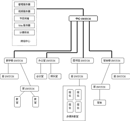 目前,許多學(xué)校都已經(jīng)建立了學(xué)校LAN。校園主干網(wǎng)絡(luò)指從學(xué)校網(wǎng)絡(luò)中心或計(jì)算中心到學(xué)校教學(xué)樓或辦公樓、學(xué)生宿舍、教師宿舍的網(wǎng)絡(luò)布線基本上都是采用100M的網(wǎng)絡(luò)結(jié)構(gòu),甚至部分學(xué)校的達(dá)到1000M。