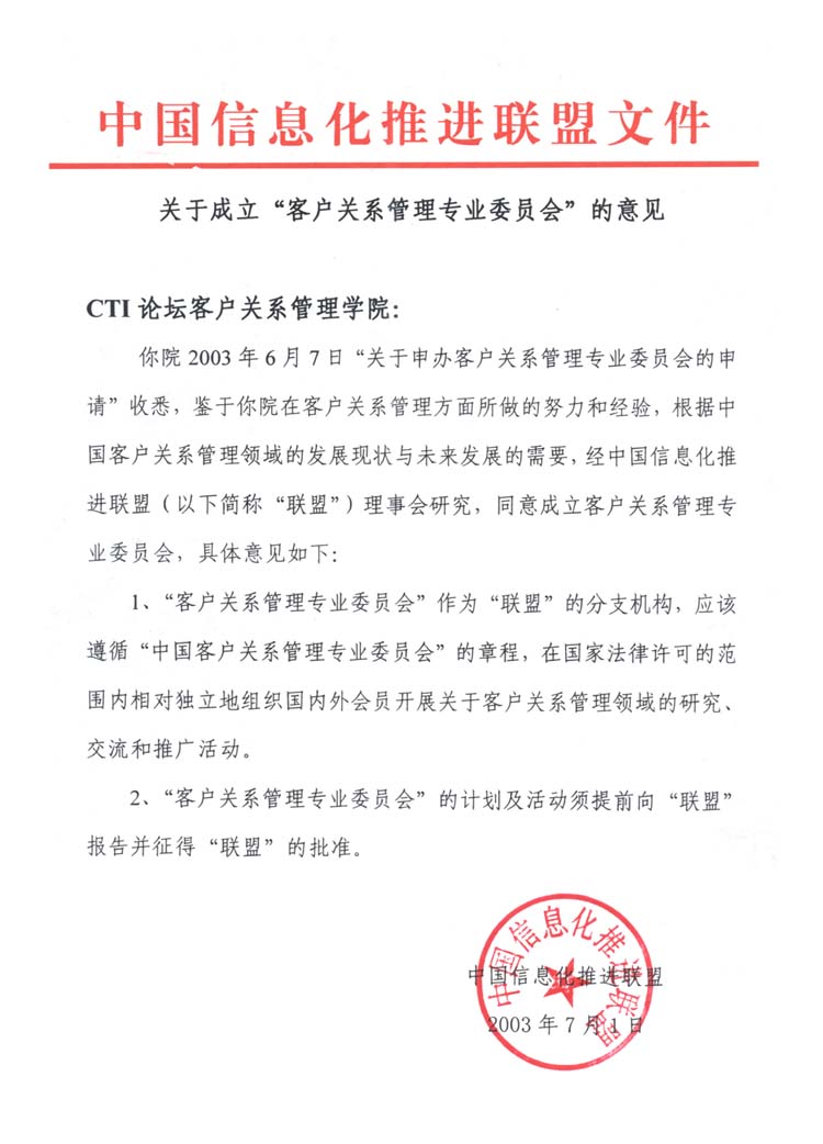 近日,由中國(guó)移動(dòng)、中國(guó)網(wǎng)通、中國(guó)聯(lián)通、海爾集團(tuán)、聯(lián)想集團(tuán)、摩托羅拉、微軟、CTI論壇等20多家單位發(fā)起籌備的"中國(guó)客戶關(guān)系管理專(zhuān)業(yè)委員會(huì)"(以下簡(jiǎn)稱(chēng)專(zhuān)委會(huì)),經(jīng)信息產(chǎn)業(yè)部中國(guó)信息化推進(jìn)聯(lián)盟的批準(zhǔn),正式在京成立。