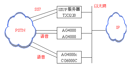 系統(tǒng)中ISUP服務(wù)器通過(guò)SS7鏈路和PSTN連接,通過(guò)IP網(wǎng)絡(luò)和語(yǔ)音處理機(jī)連接,這兩個(gè)連接傳送的是信令信號(hào)。語(yǔ)音處理機(jī)通過(guò)話路和PSTN連接,這個(gè)連接傳輸?shù)氖钦Z(yǔ)音。