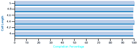 如圖2所示,BHCC值降到99%以下的轉(zhuǎn)換點(diǎn)是每4.0秒產(chǎn)生一個(gè)呼叫。在呼叫間隔是4.0秒時(shí),BHCC值是99.12%,小于需要的5秒間隔,達(dá)到了企業(yè)級(jí)系統(tǒng)可接受的速率。
